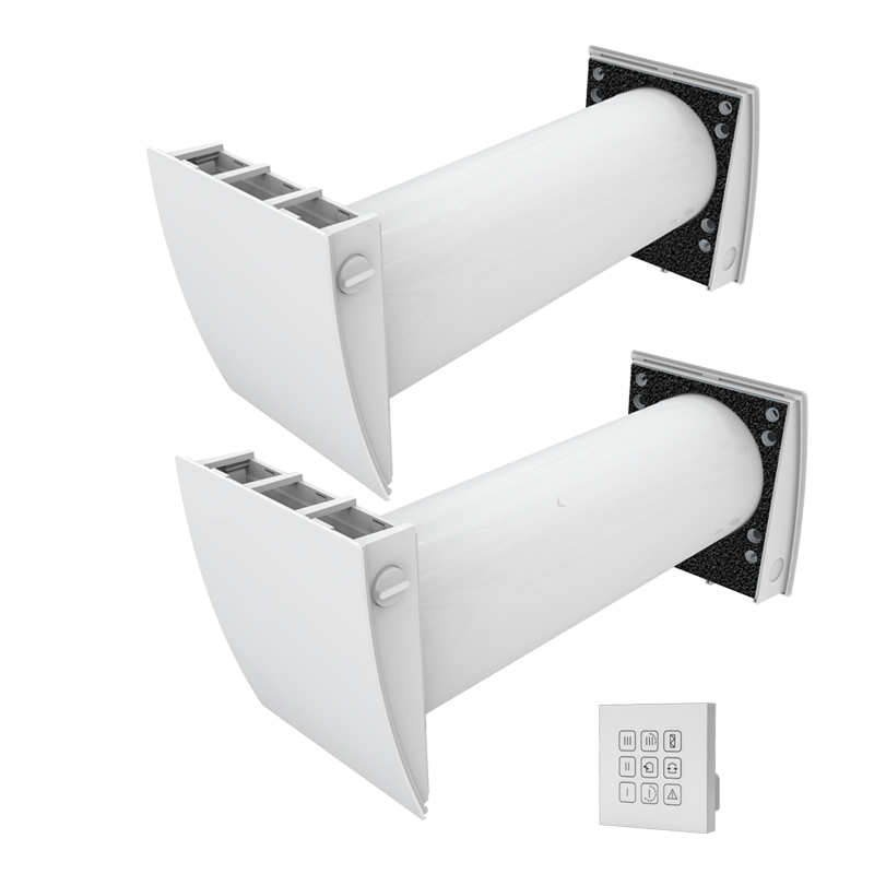 Две установки, работающие в противофазе, для обеспечения сбалансированной вентиляции помещения.Организация эффективной энергосберегающей приточно-вытяжной вентиляции квартир, частных домов, коттеджей, общественных и коммерческих помещений.Очистка воздуха на 99 % от загрязняющих частиц PM2.5 с помощью опционального фильтра F8.Поглощение наружного шума.Снижение теплопотерь, вызванных вентиляцией, за счет рекуперации тепла.Обеспечение баланса влажности и регулируемого воздухообмена для создания индивидуального микроклимата.